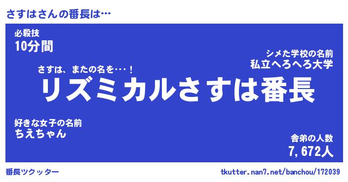 | ピコ太郎風あだ名 | 『サコ四郎』『ピサ十郎』『サス五郎』 |
