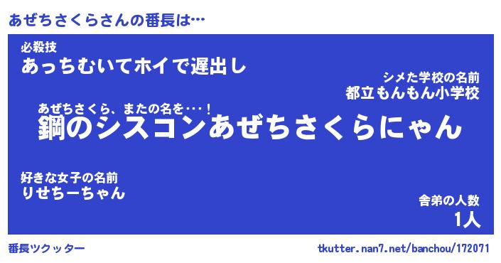 | ヒーロー風カッコイイあだ名 | 『スーパーアゼチサクラ』『天弓騎士アゼ』 |