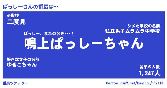 | 意味不明あだ名 | 『ペロリンぱっしー』『永久保存ぱっしー』 |