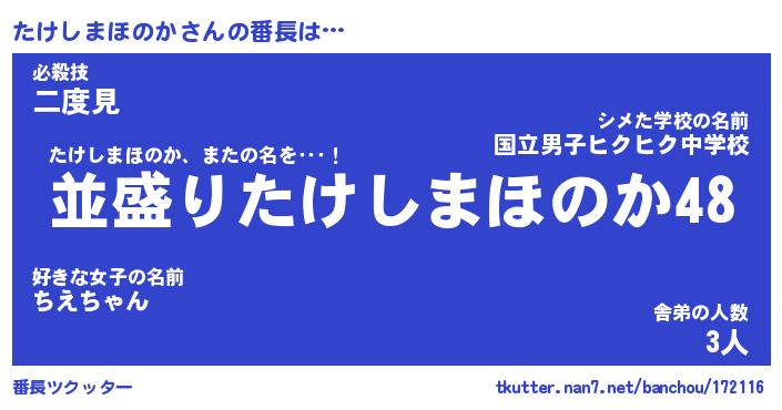 | ヒーロー風カッコイイあだ名 | 『スーパータケシマホノカ』 |