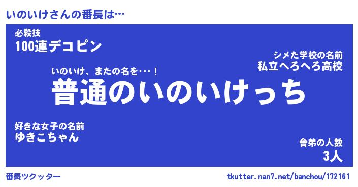 | ヘコむあだ名 | 『いのにゅー』『つくし』『いの太郎』 |