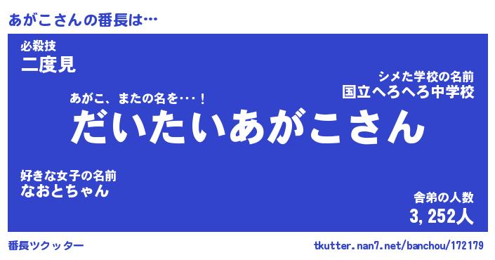 | ピコ太郎風あだ名 | 『アコ十郎』『ピア五郎』『アガ二郎』 |