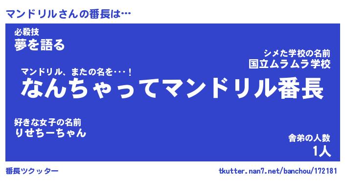 | ファンタジー風あだ名 | 『マンフェル』『エターナルマンドリルー』 |