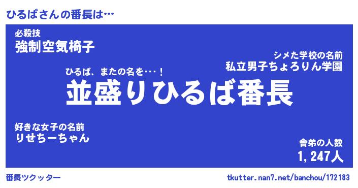 | ヒーロー風カッコイイあだ名 | 『スーパーヒルバ』『ウルトラひるばマン』 |