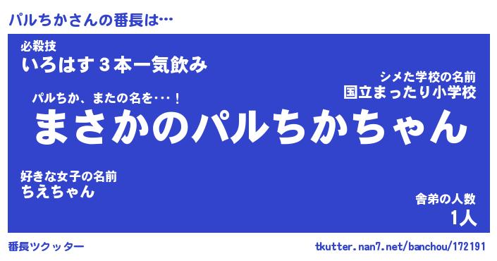 | 意味不明あだ名 | 『ペロリンパルちか』『永久保存パルちか』 |