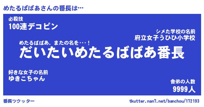 | ヒーロー風カッコイイあだ名 | 『スーパーメタルババア』『炎刃騎士メタ』 |