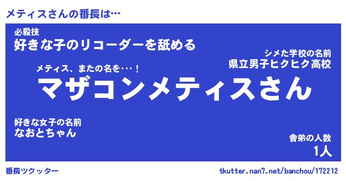 | ヘコむあだ名 | 『メテにゅー』『酢こんぶ』 |
