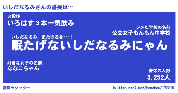 | 意味不明あだ名 | 『ペロリンいしだなるみ』 |