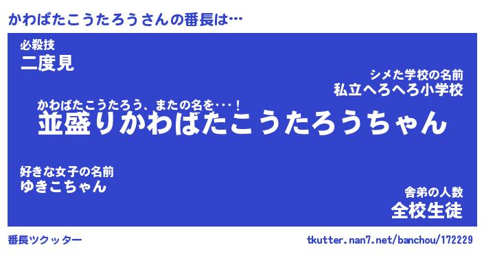 | 肩書あだ名 | 『かわばたこうたろう店長』 |