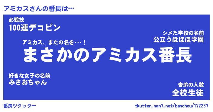 | ヒーロー風カッコイイあだ名 | 『スーパーアミカス』『暗黒騎士アミ』 |