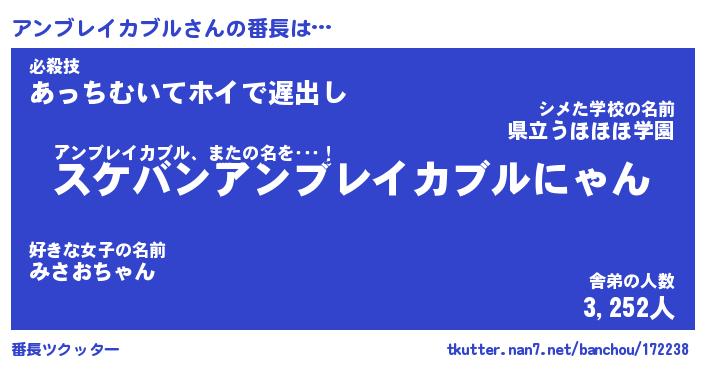 | ヘコむあだ名 | 『アンふぇ~』『なまこ酢』 |