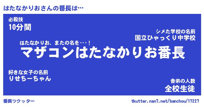 | 肩書あだ名 | 『はたなかりお社長』『はたなかりお教頭』 |