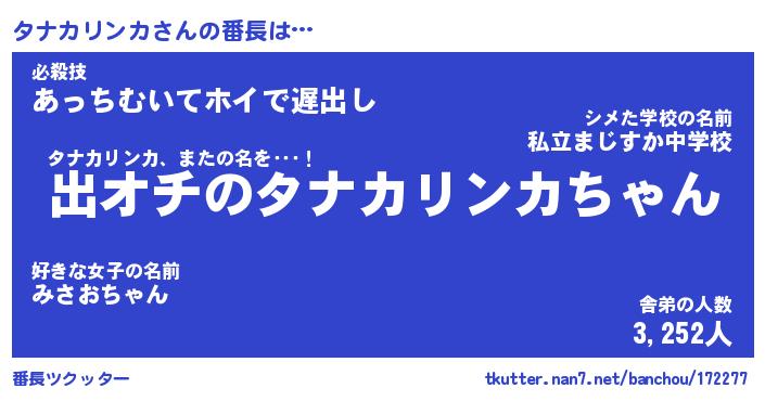 | ヒーロー風カッコイイあだ名 | 『スーパータナカリンカ』『幻影騎士タナ』 |