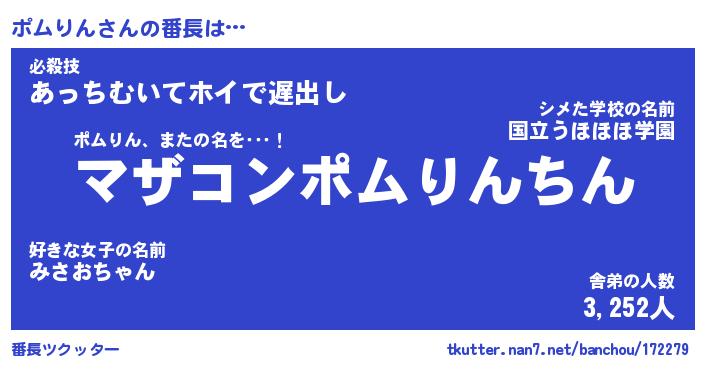 | 意味不明あだ名 | 『ペロリンポムりん』『永久保存ポムりん』 |