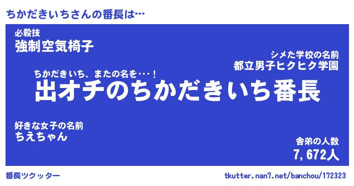 | ヒーロー風カッコイイあだ名 | 『スーパーチカダキイチ』『炎刃騎士チカ』 |