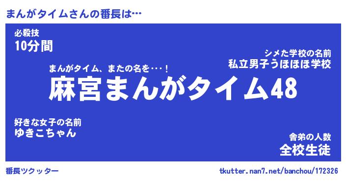 | ピコ太郎風あだ名 | 『マコ五郎』『ピマ十郎』『マン史郎』 |