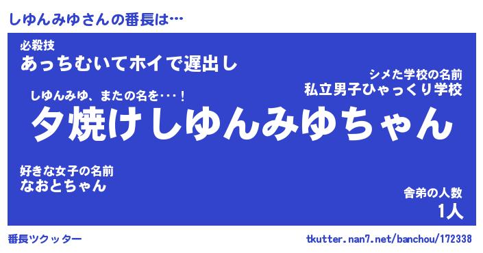 | ヒーロー風カッコイイあだ名 | 『スーパーシユンミユ』『天弓騎士シユ』 |