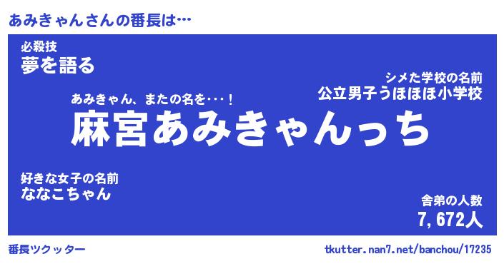 | ヘコむあだ名 | 『あみっふぃ~』『つくし』『あみを』 |