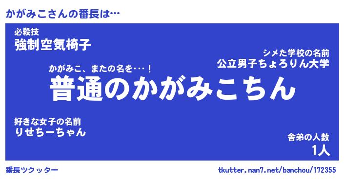 | 肩書あだ名 | 『かがみこ社長令嬢』『かがみこ総理大臣』 |