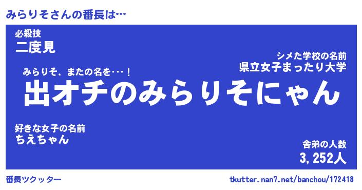 | 意味不明あだ名 | 『ペロリンみらりそ』『永久保存みらりそ』 |