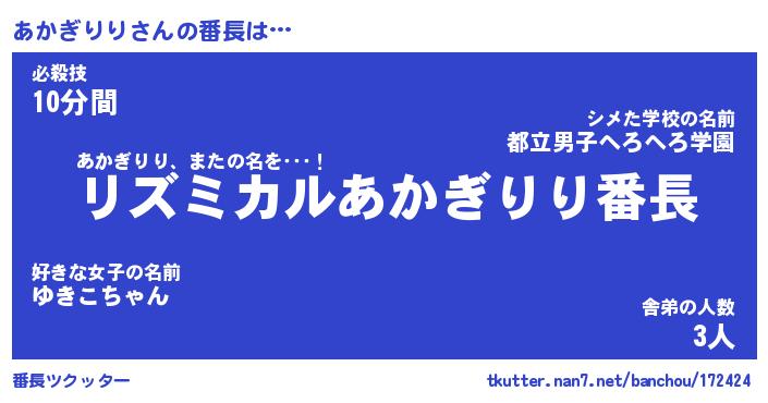 | ヒーロー風カッコイイあだ名 | 『スーパーアカギリリ』『魔戒騎士アカ』 |