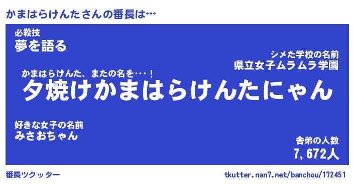 | 伝説のあだ名 | 『封印されしスナイパーかまはらけんた』 |