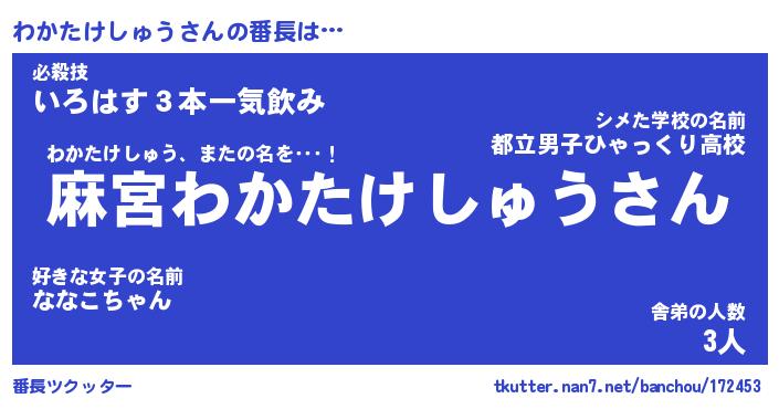| ヒーロー風カッコイイあだ名 | 『スーパーワカタケシュウ』 |