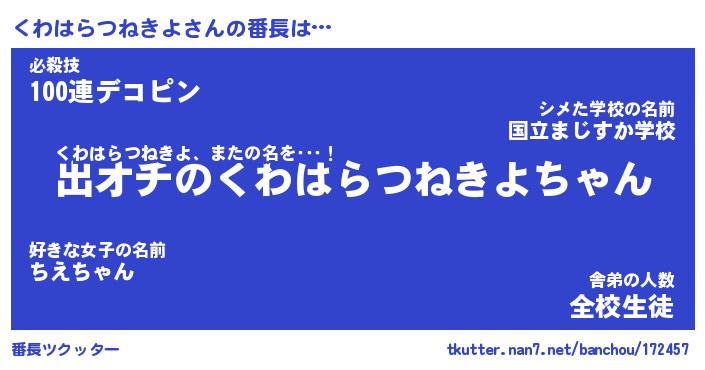 | 伝説のあだ名 | 『伝説のスナイパーくわはらつねきよ』 |