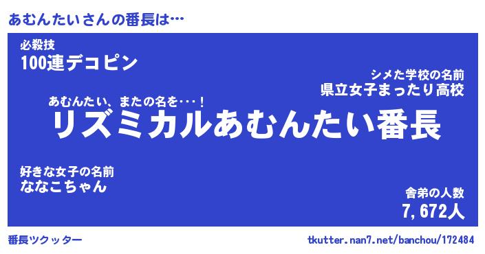 | 伝説のあだ名 | 『伝説のスナイパーあむんたい』 |