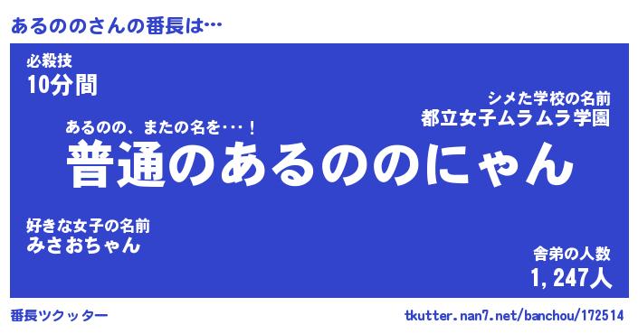 | 2回繰り返すあだ名 | 『あるある』『ああるる』『なあなあ』 |