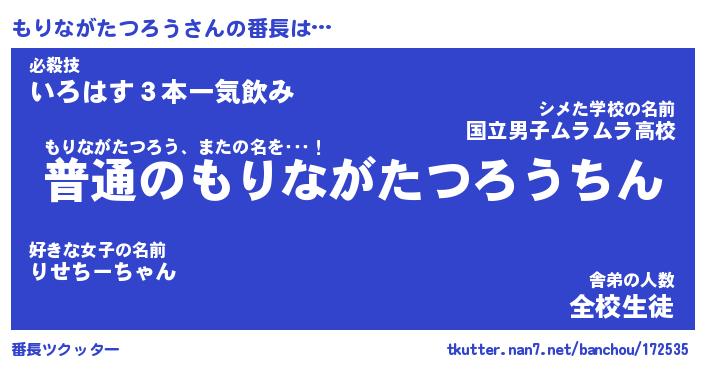 | 肩書あだ名 | 『もりながたつろう店長』 |