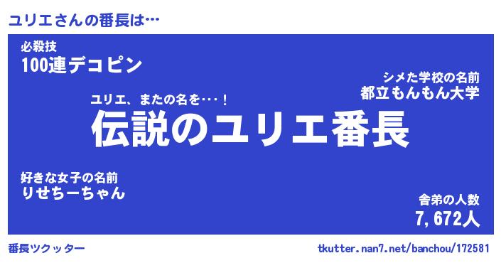 | ピコ太郎風あだ名 | 『ユコ史郎』『ピユ四郎』『ユリ五郎』 |