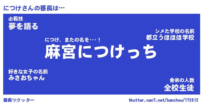 | 意味不明あだ名 | 『ペロリンにつけ』『につけフォーエバー』 |