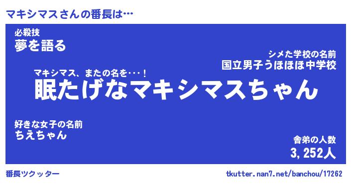 | ピコ太郎風あだ名 | 『マコ十郎』『ピマ二郎』『マキ八郎』 |