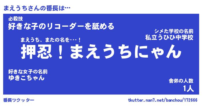 | ファンタジー風あだ名 | 『マエフェル』『エターナルマエウチー』 |
