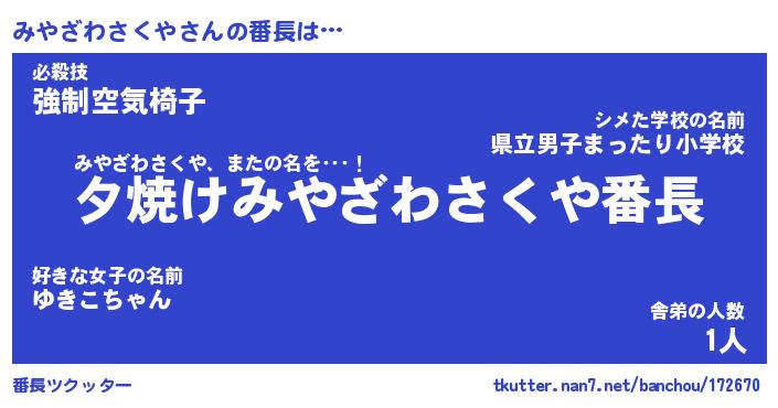 | 伝説のあだ名 | 『封印されしスナイパーみやざわさくや』 |