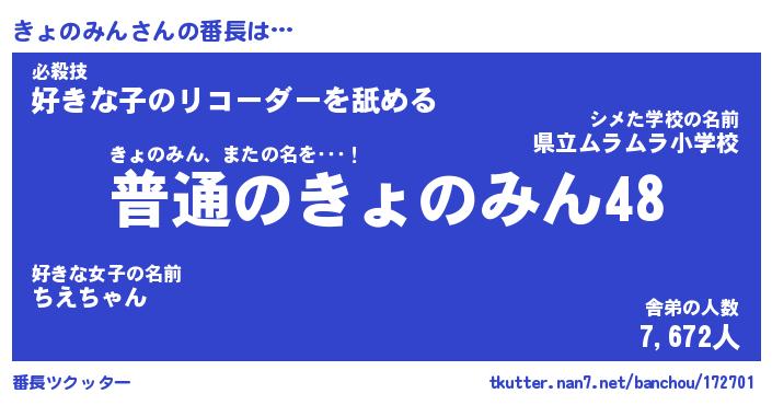 | 肩書あだ名 | 『きょのみん社長』『きょのみん総理大臣』 |