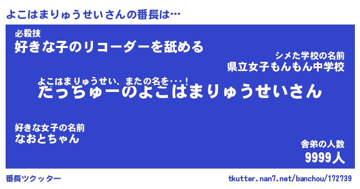 | 伝説のあだ名 | 『伝説のスナイパーよこはまりゅうせい』 |
