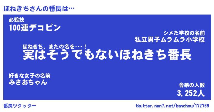 | ピコ太郎風あだ名 | 『ホコ次郎』『ピホ六郎』『ホネ三郎』 |