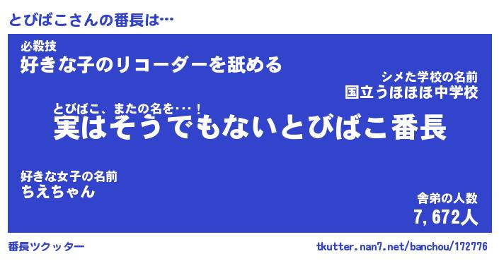 | ポケモン風あだ名 | 『トビチュウ』『トビバダネ』 |