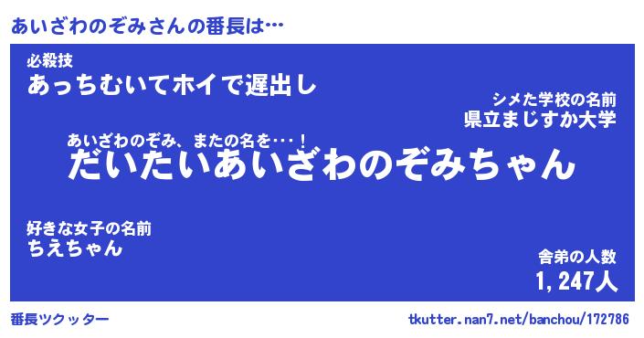 | 意味不明あだ名 | 『ペロリンあいざわのぞみ』 |