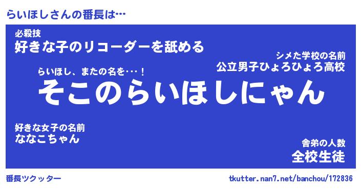| らいほし先生が勤める学校名『県立肉球中学校』 |