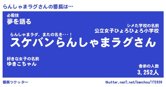 | 胡散臭い通販商品みたいなあだ名 | 『モテモテ間違いなし水晶球…その名も「らんしゃまラグ」』 |