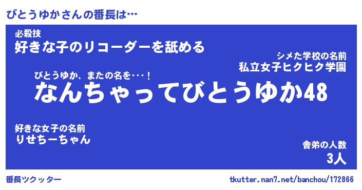 ヘコむあだ名 | 『びとふぇ~』『酢こんぶ』 |