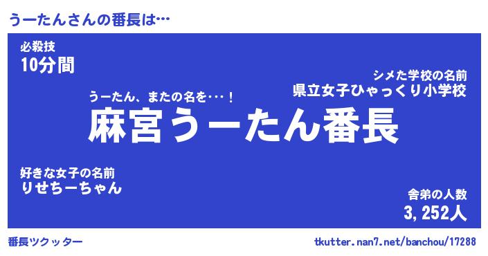 | 意味不明あだ名 | 『ペロリンうーたん』『永久保存うーたん』 |