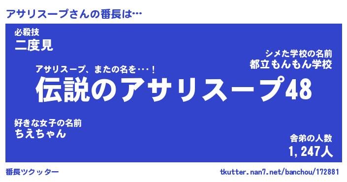 | ヒーロー風カッコイイあだ名 | 『スーパーアサリスープ』『銀牙騎士アサ』 |
