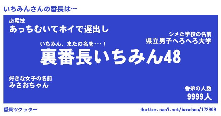 | 意味不明あだ名 | 『ペロリンいちみん』『永久保存いちみん』 |