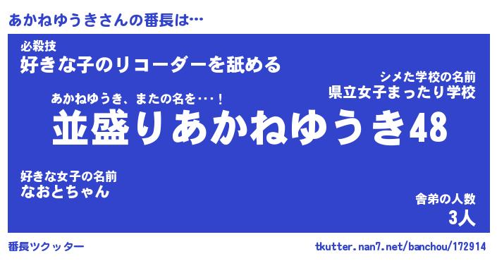 | 恥ずかしいあだ名 | 『プリティーあかねゆうき』『あかっちょ』 |