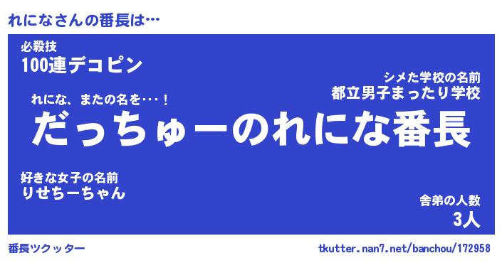 | ヒーロー風カッコイイあだ名 | 『スーパーレニナ』『ウルトラれになマン』 |