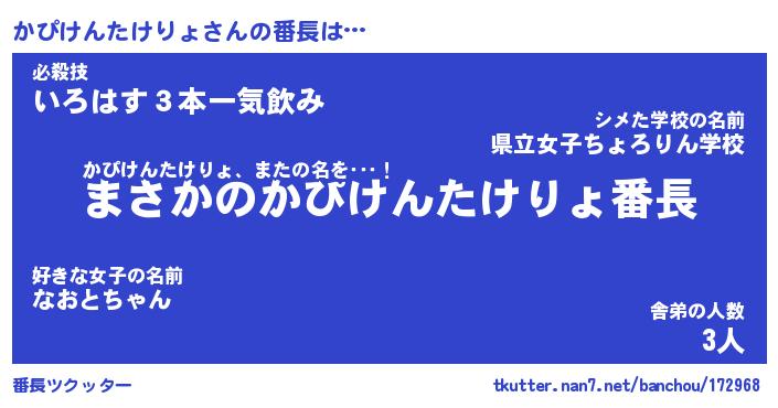 | 肩書あだ名 | 『かぴけんたけりょ御曹司』 |